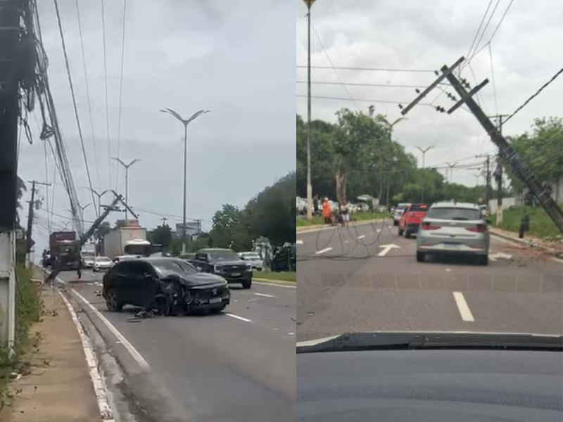 Carro derruba postes e causa congestionamento na avenida do Turismo, em Manaus; VÍDEO