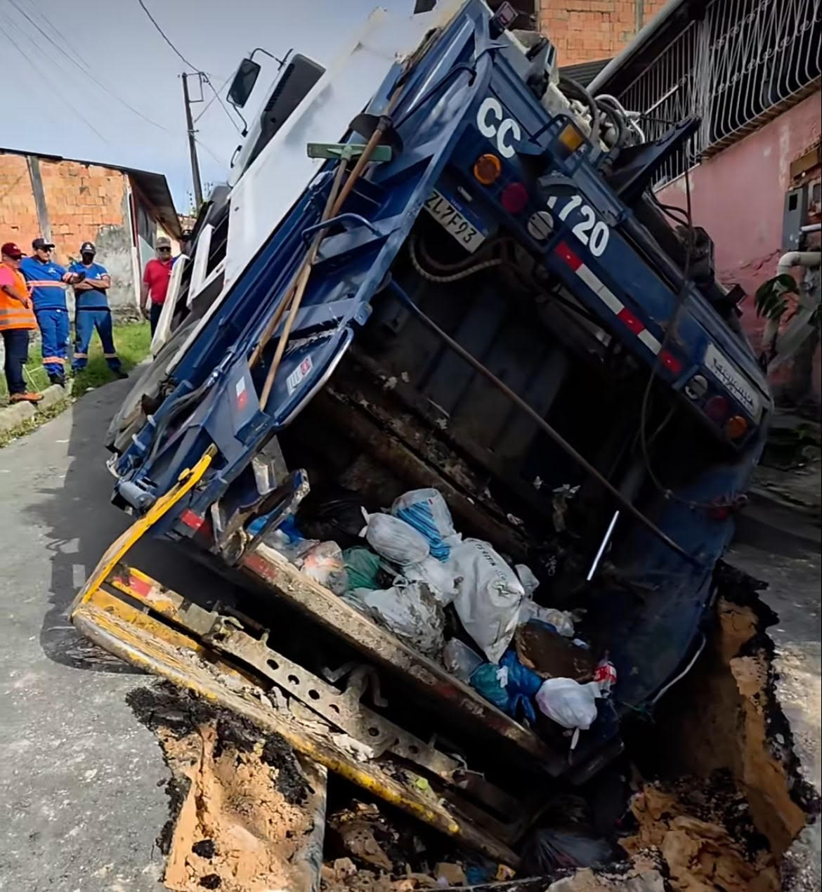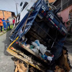 Cratera engole caminhão de lixo e expõe problemas estruturais em rua de Manaus