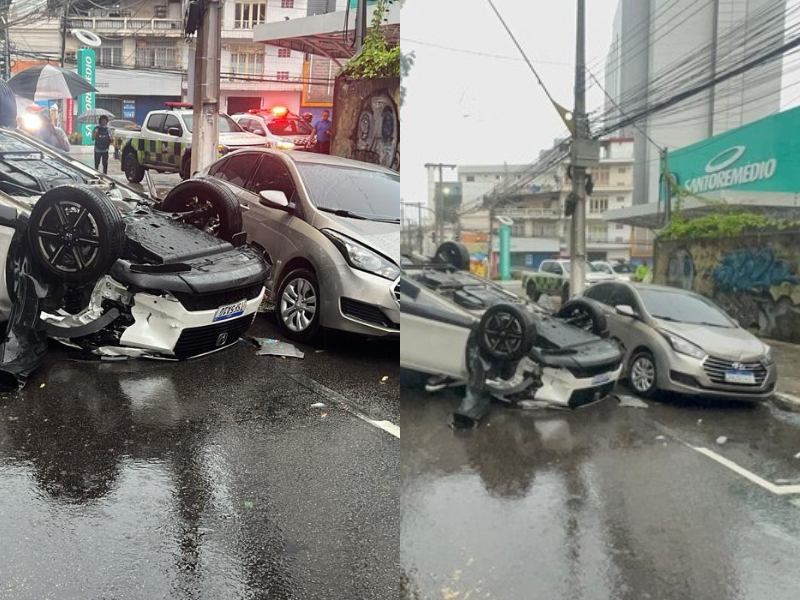 VEJA: Mulher capota carro durante forte chuva na Avenida Joaquim Nabuco, no Centro de Manaus