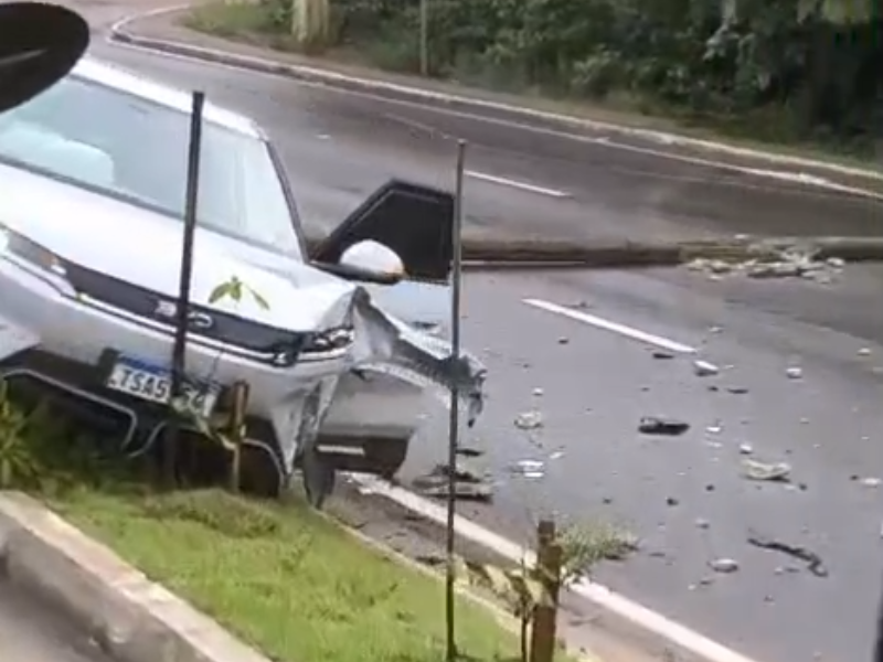Carro elétrico perde controle e colide contra poste na Avenida do Turismo, em Manaus; VÍDEO