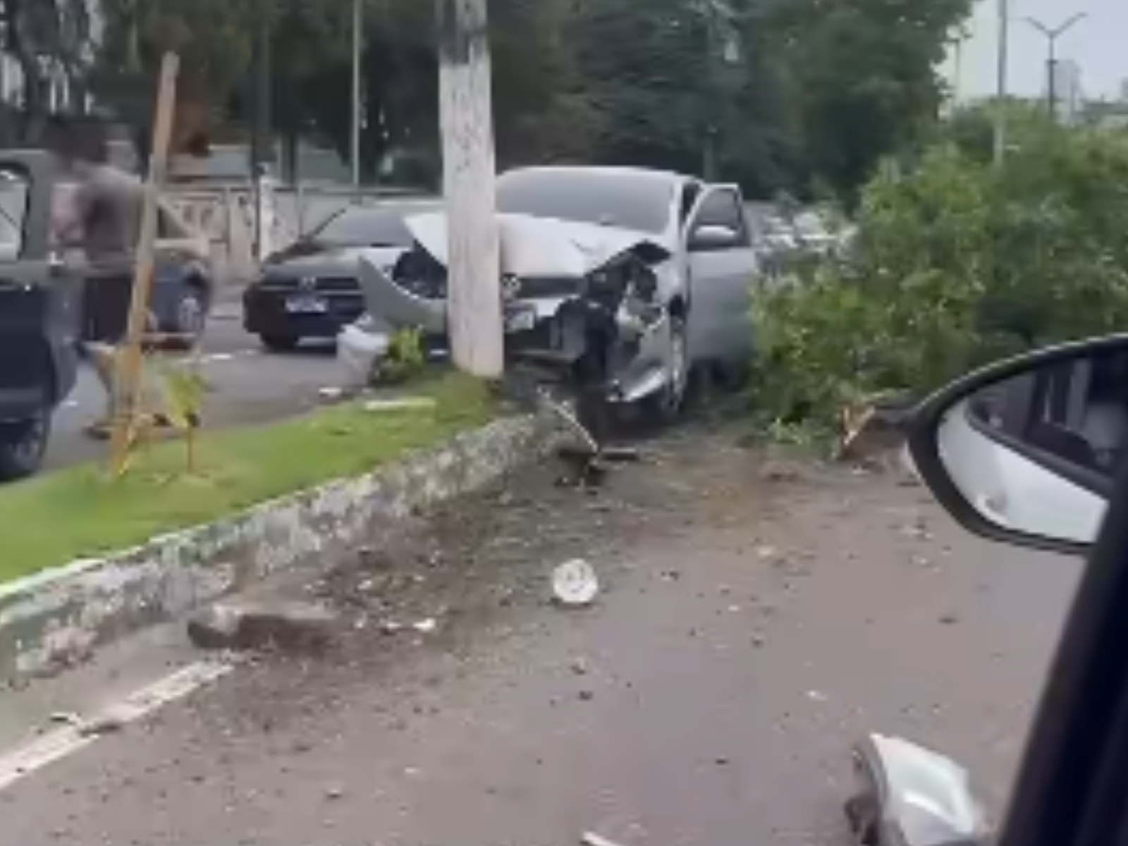 VEJA: Carro colide com poste após acidente na Avenida André Araújo, em Manaus