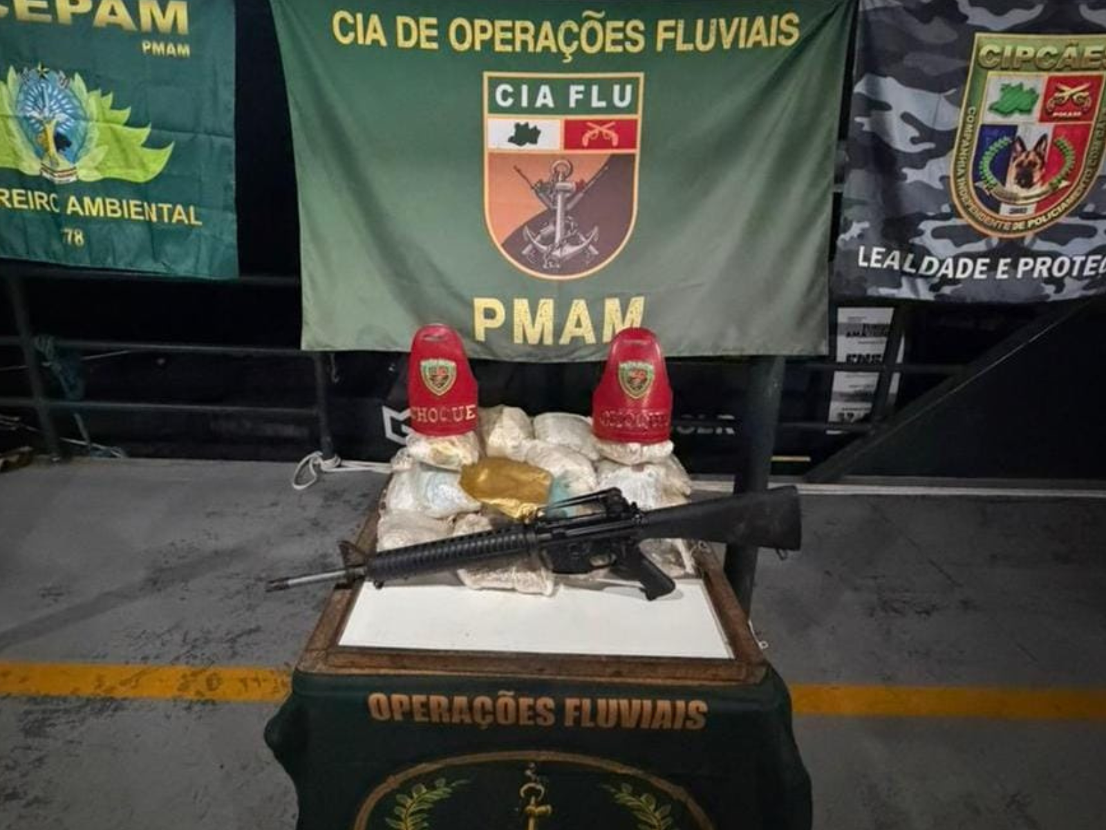 Suspeito foi flagrado com dezenas de tabletes de entorpecentes, fuzil M16 e embarcação adaptada durante…