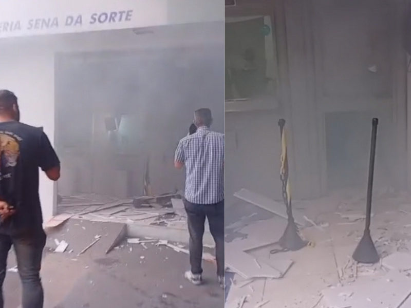 Explosão destruiu parte do estabelecimento; Suspeitos fugiram com dois malotes de dinheiro e ninguém ficou…